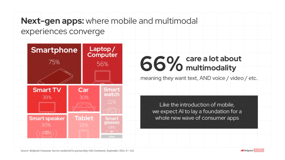 As the utility of tomorrow’s AI applications expands from search and discovery to planning and procurement, where and how we interact with them will likely evolve as consumers and prosumers alike increasingly expect ubiquitous access and form factor flexibility.