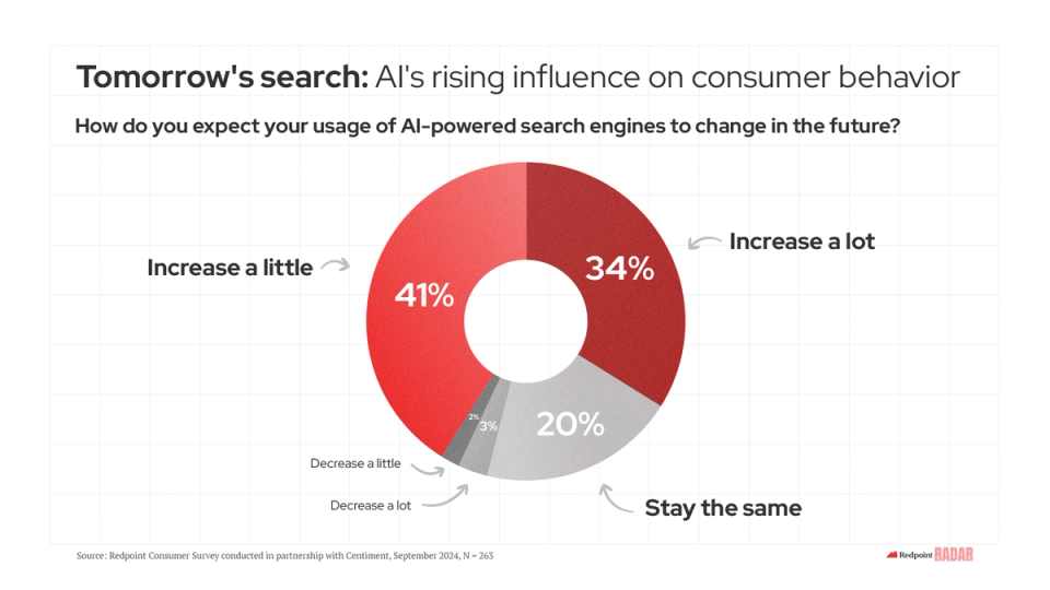 Like Dorothy entering Oz, consumers today are eager to see how AI’s expansion across search, discovery, and planning might open the door to a trendy, technicolor future. To better understand consumers’ usage, expectations, and aspirations with respect to all things AI, Team Redpoint (with the help of our partners at Centiment) surveyed 250 consumers this Fall – and what we discovered were aspirations that rivaled even our own optimistic outlook.
