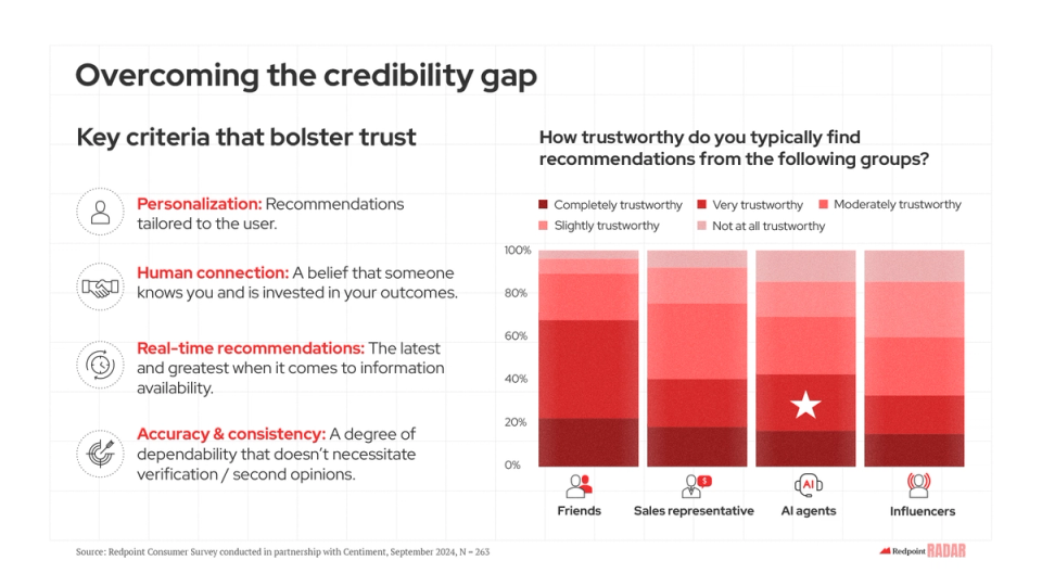 One factor that could be slowing wider AI adoption? Consumer trust. And as a firm that obsesses over the importance of trust, we can certainly relate. Tomorrow’s tools will need to further prove their credibility if they hope to pave consumers’ path to AI’s Emerald City.