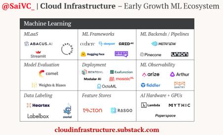 Finally, ML observability vendors such as Arize and Arthur.ai will become more important. These vendors allow companies to measure and optimize model performance in production systems, similar to data observability startups like Bigeye and Monte Carlo.