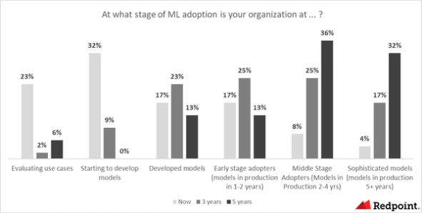 4) Specific budgets for ML. Larger enterprises are carving out machine-learning specific budgets, separate from data ones. More frequently, larger companies have a “Head of Machine Learning,” followed by a dedicated junior team and separate budget allocations for ML solutions.