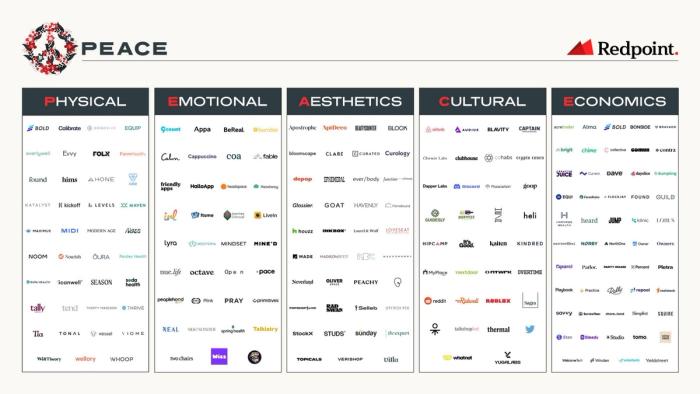 Today, we find ourselves at a major inflection, a new “new normal” that will define the years to come. This includes a critical acknowledgement that a new era of discretionary consumption is upon us—supported by data points like the NASDAQ dipping almost 30 percent year-to-date to layoffs and hiring freezes announced with alarming frequency, topped with consumer sentiment plunging to post-crisis lows. Though what consumers are seeking out seems to be changing, the why has stood the test of time: Consumers tend to pursue PEACE, or Physical + Emotional + Aesthetic + Cultural + Economic enlightenment. We at Redpoint are excited to break down the 5 Pillars of PEACE, especially as we remain agile in the face of the ongoing correction.